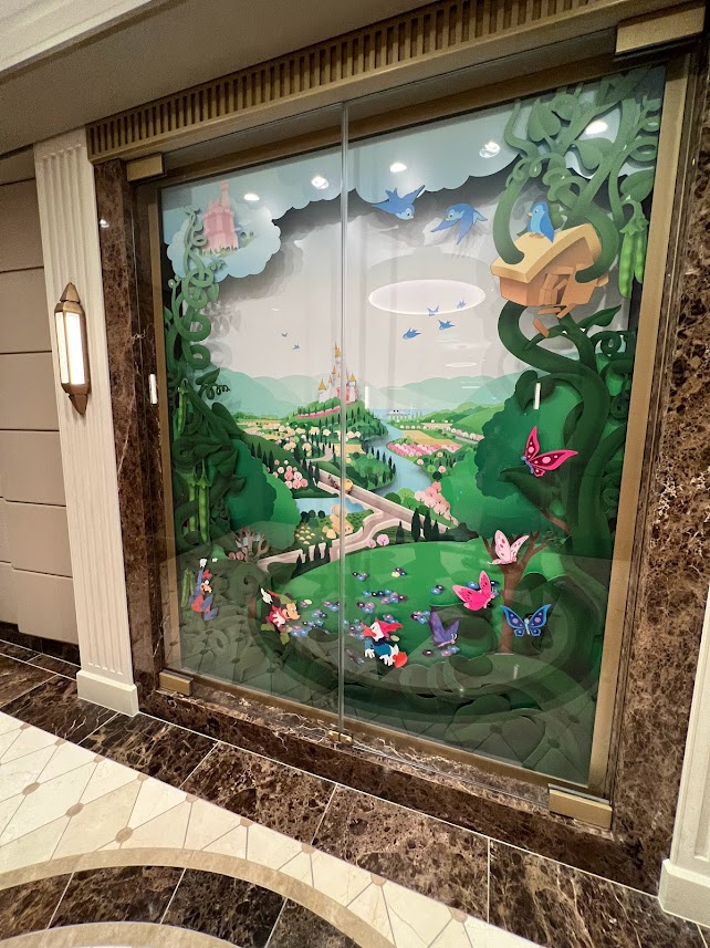 After we left Hyperspace Lounge, it was time to get pool-ready so we headed back to the room. And on the way we passed this piece of art that we have seen in pretty much every single vlog covering the Disney Wish.