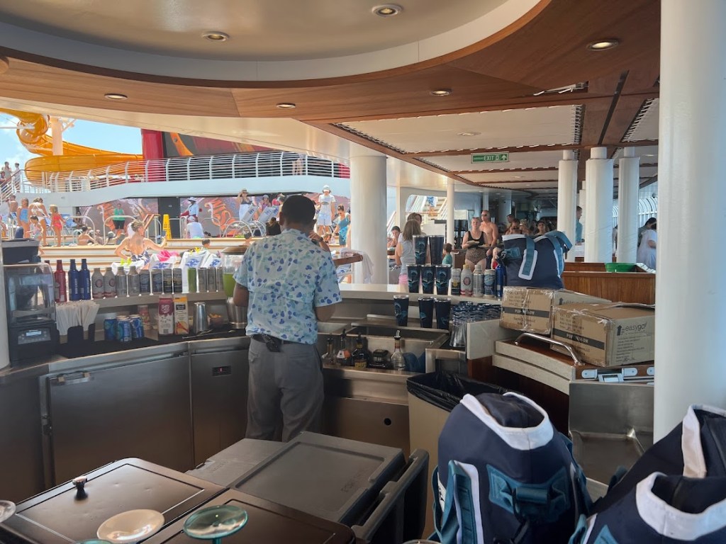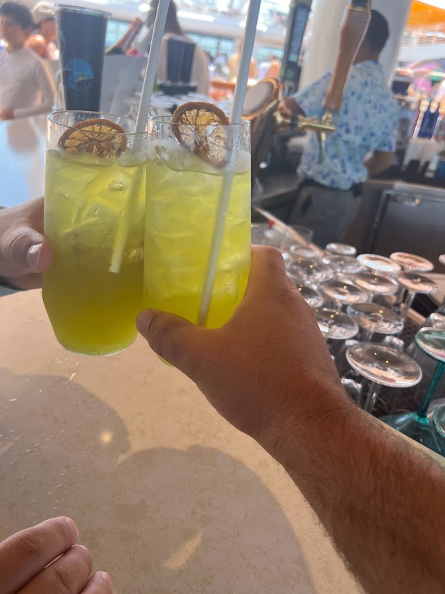Once we were all ready to hit the pool, we went down to Deck 11 to meet up with everyone and grab some lunch. And by lunch, I mean drinks. Because we hit the bar first.