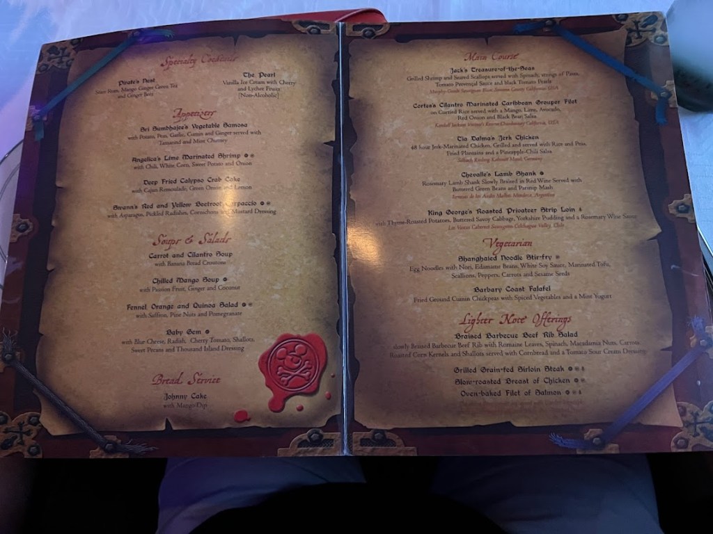 It’s interesting. You know, I feel like when we got back I was kind of disparaging the Pirate’s Night menu but honestly? I really liked my food tonight. I think the issue is just compared to the menus every other night, this one just wasn’t all that exciting. But still, it was all good stuff.