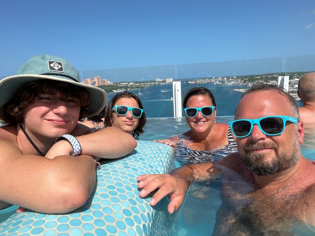 As you might recall, we ended that night having some drinks out by the pool and talking about what we had to look forward to the rest of the trip. While we were there, Tony informed us that he brought no long pants. Which would be fine. I mean, we were heading to the Bahamas in the middle of the summer. Who needs pants?