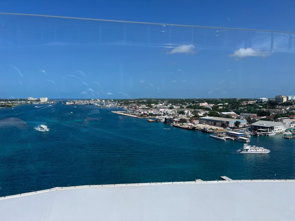 As we were listening to the dulcet tones of Ashley Tisdale and stuffing pastries into our mouth-holes, we continued to dock in Nassau.