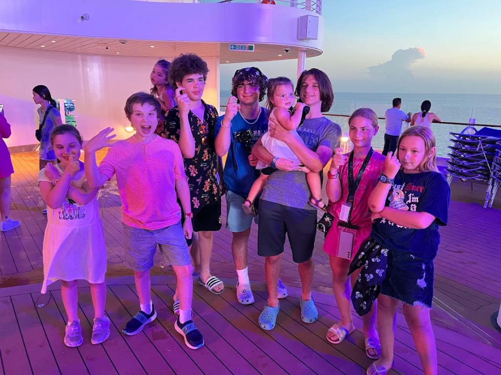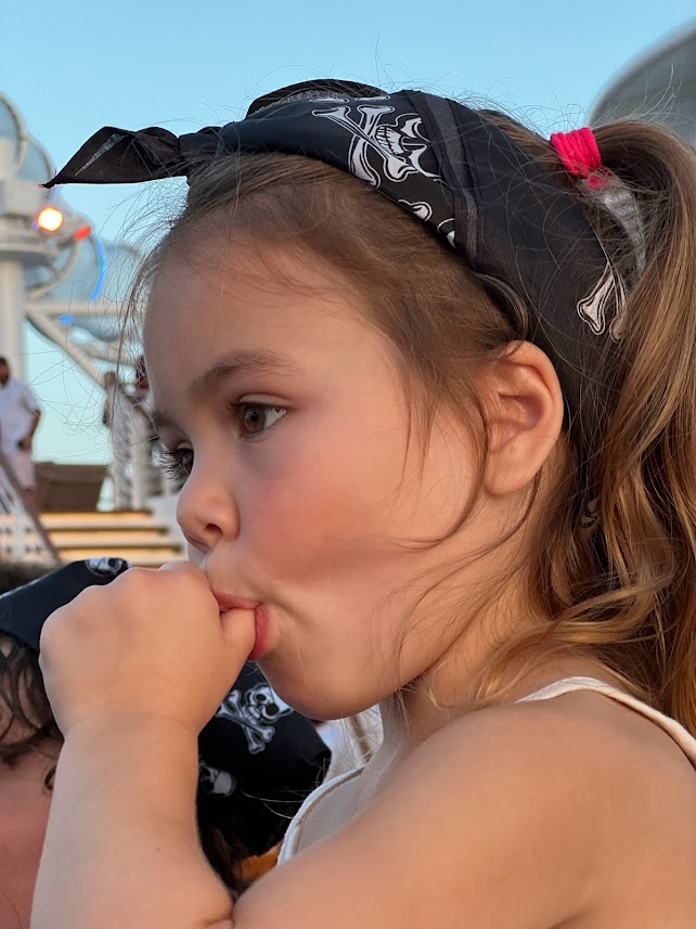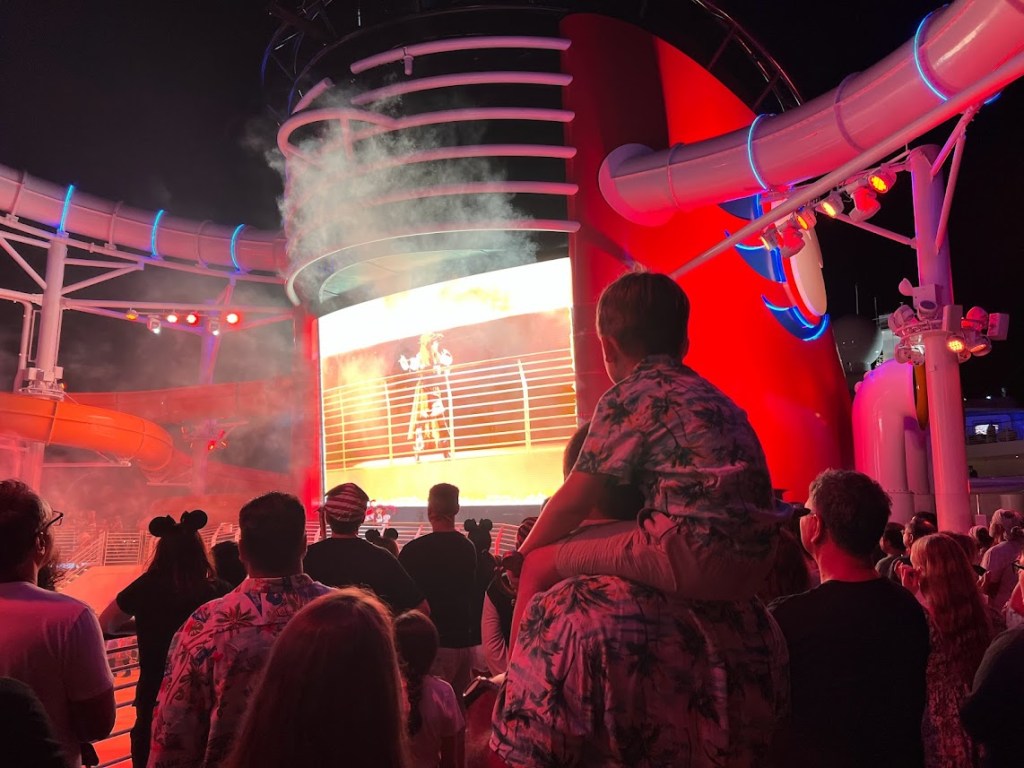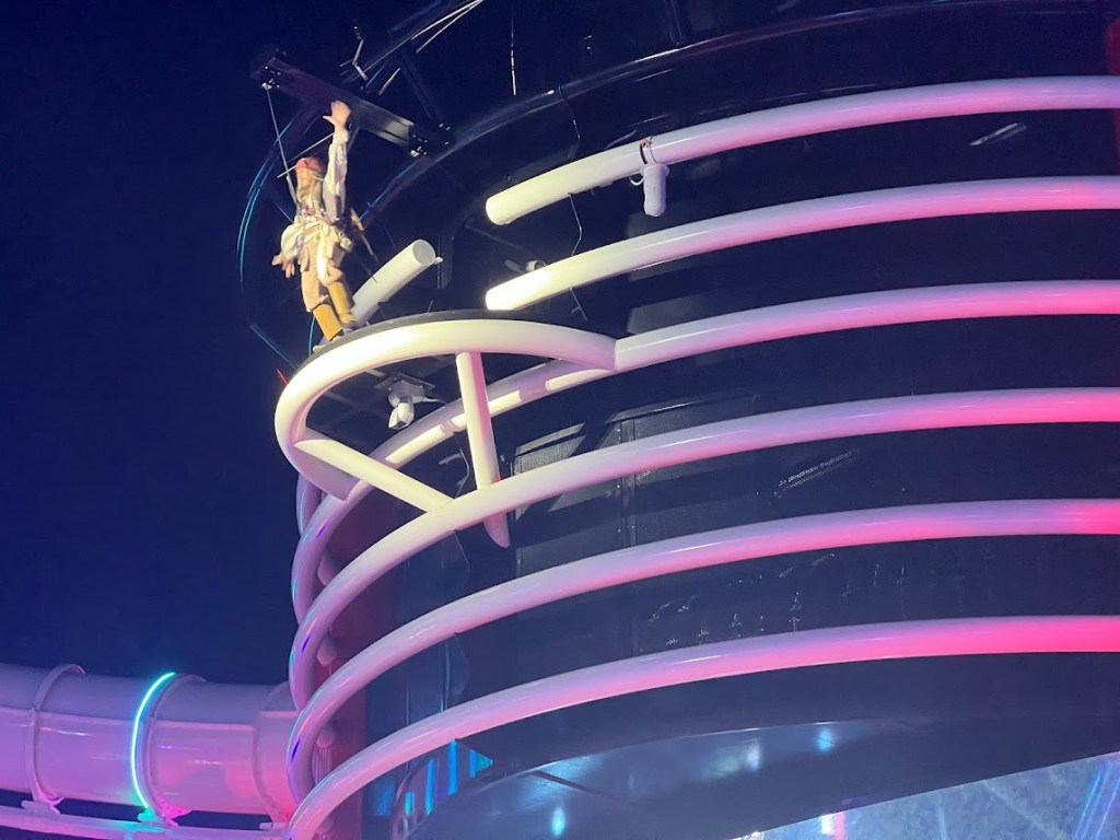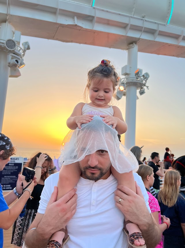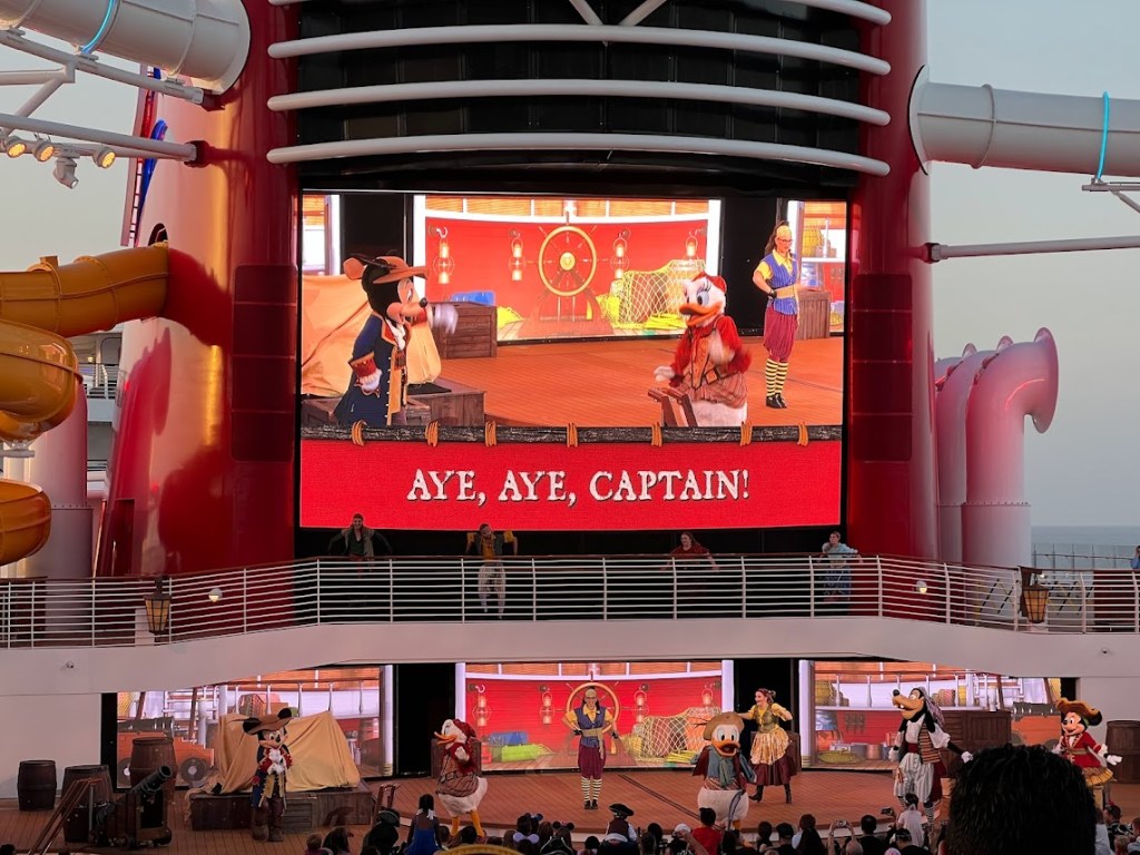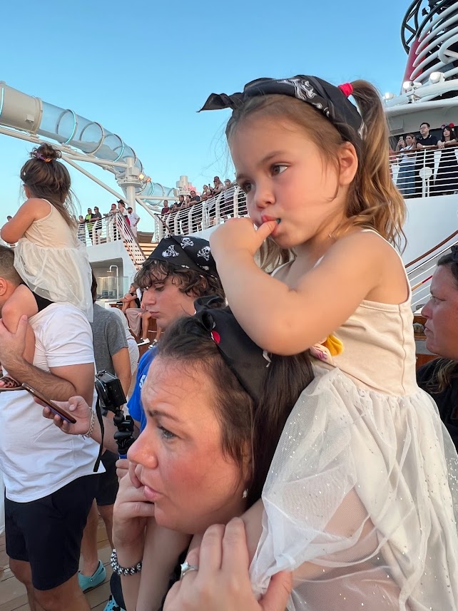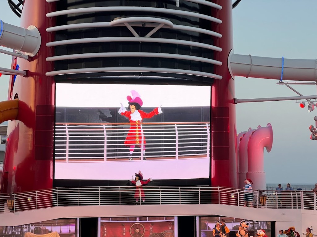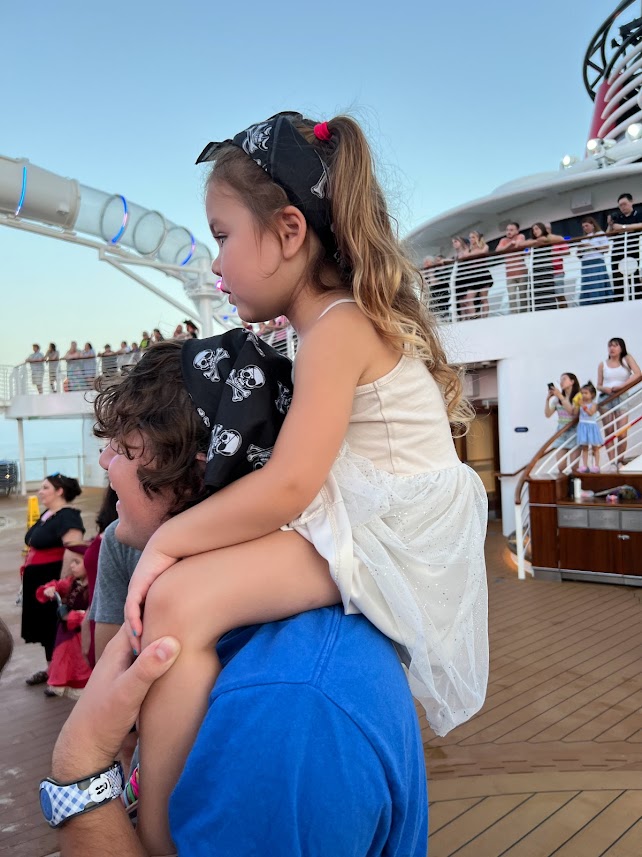 After dinner, we all went up to Deck 11 for the “Mickey’s Pirates in the Caribbean” deck party. As we arrived on Deck 11, we got to watch the sun start to go to sleep for the night.