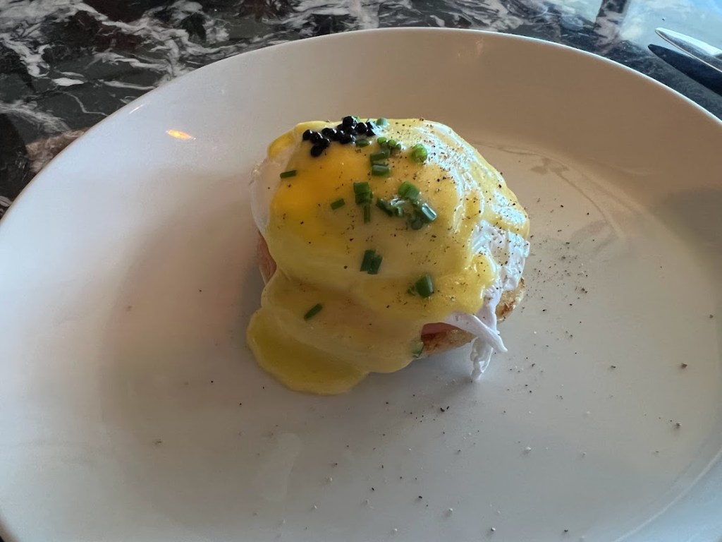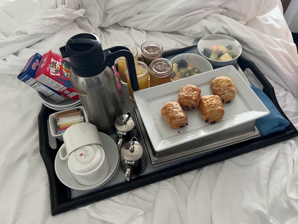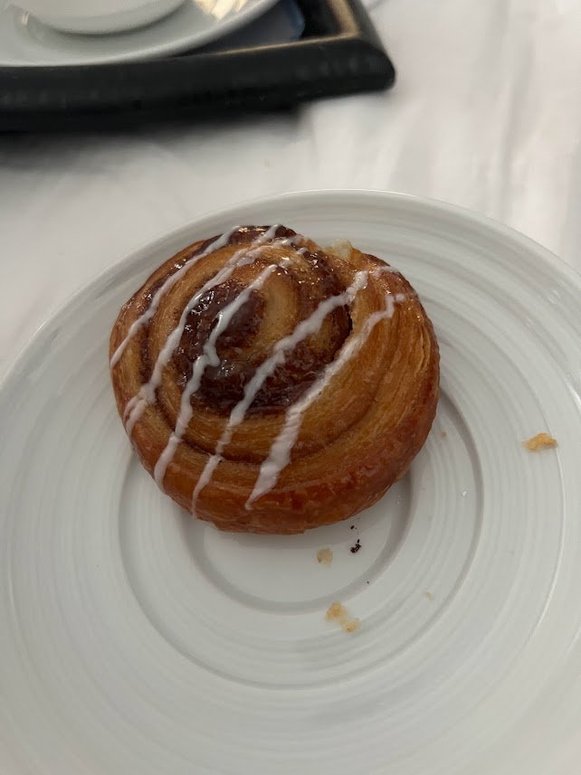 We also, as we do, put out our pre-breakfast breakfast room service order on our door the night before for delivery at 8AM. So at 8AM, this bit of wonderful showed up at our door.