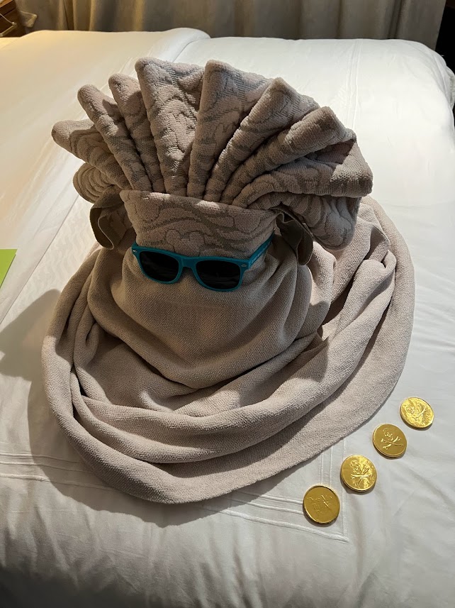 When we got into our room, we had a new towel animal waiting for us along with some chocolate coins.