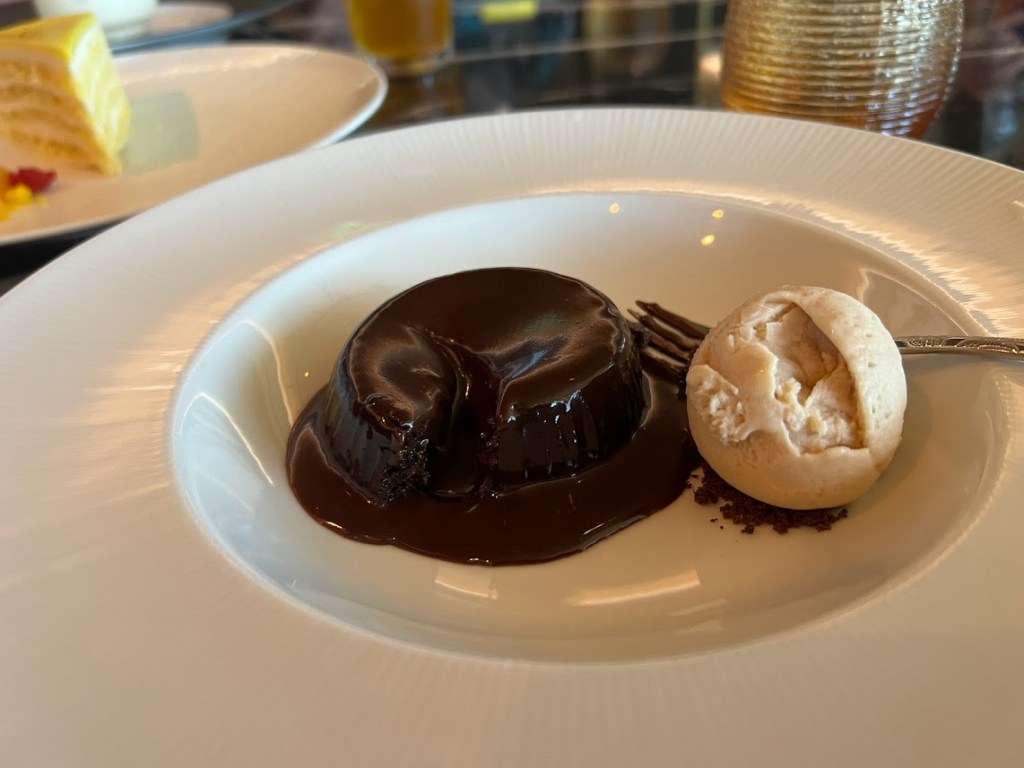 Nickie and I, once again, split a couple desserts. We got the Pirate’s Treasure Sundae (Rum Raisin lce Cream, Pineapple, Whipped Cream and Florentine shard).