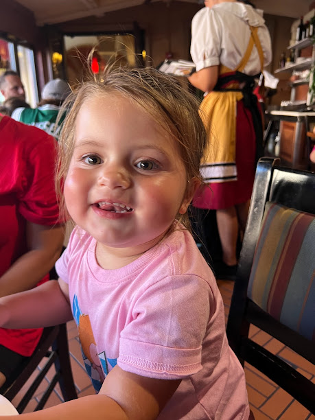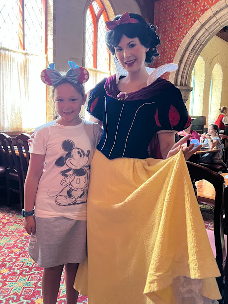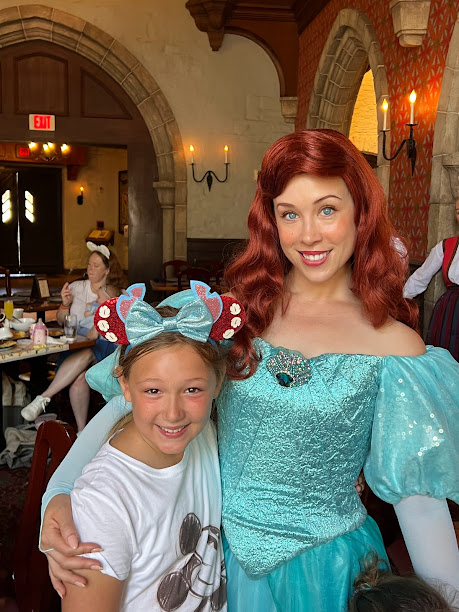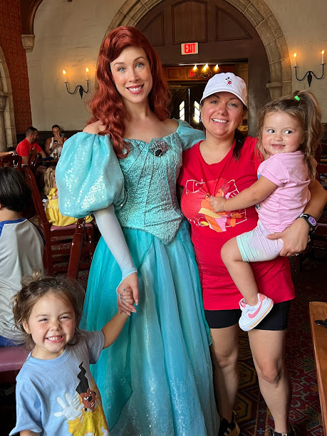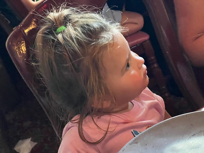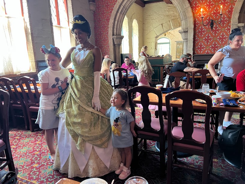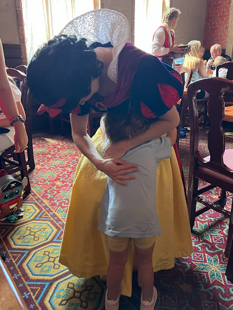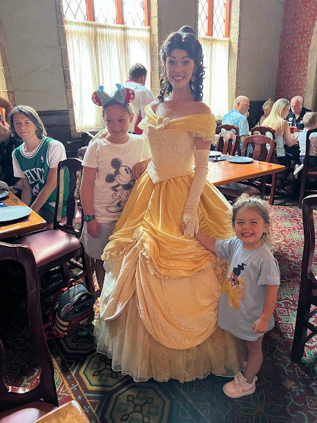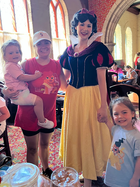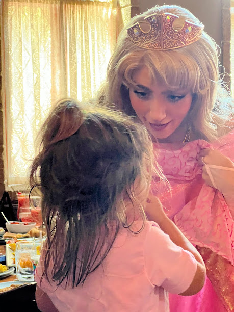 Now, you may have noticed Scarlett was absent from those earlier pictures with Belle. She was taking a little bit of time to warm up to the princesses today. At the start of the meal, her interactions with them were largely pointing. From a distance.