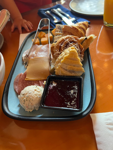 On that plate there were some pastries like croissants and what not plus some meats and cheeses and this salmon spread that was real good stuff. Oh and that jam was lingonberry. I spread a little on my piece of croissant and it added a nice layer of sweetness to an otherwise pretty standard croissant.