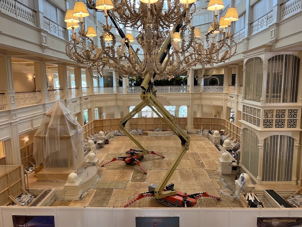 Yup. The Disney crane. They were remodeling the Grand Floridian lobby. But I mean, I like it just the way it is – crane and all. Has a real big city feel to it.