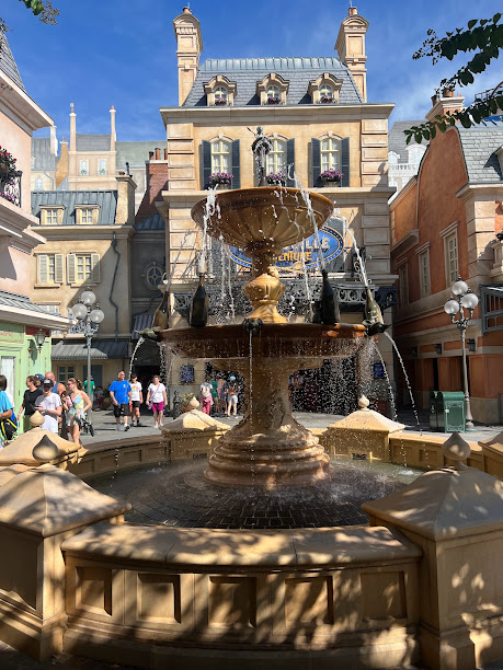 Earlier, while waiting to board our boat for Frozen Ever After, I booked us another set of Lightning Lanes and it was time to head over and use ‘em. This next Lightning Lane had us heading to France.