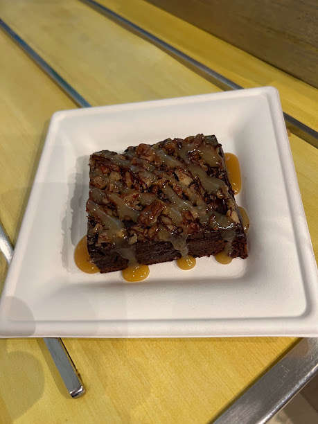 Chocolate Brownie. Caramel. Pecans. Chocolate Frosting. Chocolate Chips. And then the girl behind the counter had the AUDACITY to ask me if I wanted her to drizzle caramel on it. I mean, we’ve come this far. No turning back now.