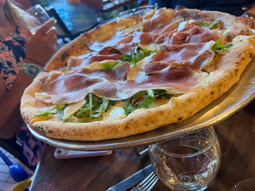 We also ordered a Prosciutto e Meloni (White Pizza – Fontina, Mozzarella, Prosciutto, Cantaloupe, Arugula).