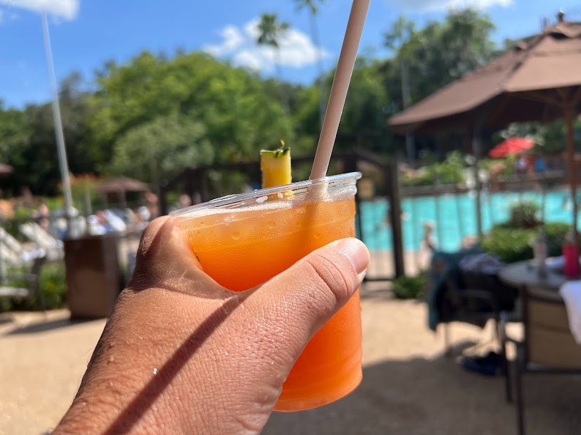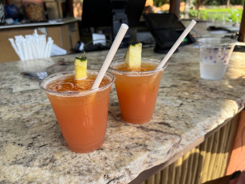 And after a quick dip? Nickie and I made straight for the Uzima Springs Pool Bar and ordered up a couple Captain’s Mai Tais (Captain Morgan Original Spiced Rum, Bols Amaretto, and Tropical Juices topped with a float of Myer’s Original Dark Rum).