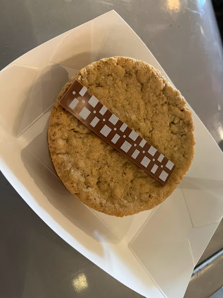 Two giant oatmeal cookies with vanilla cream filling inside and a chocolate bandolier on top. Not only does this thing celebrate Chewbacca, which obviously was well overdue. Ahem…