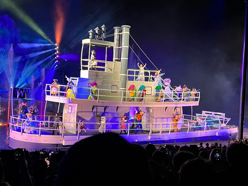 Fantasmic! is a PIA of a show to get to, but I do love it. How it mixes music with live performers with pyrotechnics with water effects with lasers. It’s a whole situation my friends.