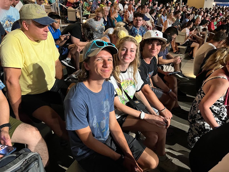 The five of us, though, still had a little bit of night ahead of us. I didn’t mention it before but our dinner at 50’s Prime Time was actually what’s called a Fantasmic! Dining Package. Which means not only did we get a great dinner but we had tickets to see Fantasmic! from a reserved seating section. And that’s a good thing because getting in and getting seated for Fantasmic! is all kinds of nightmare fuel.