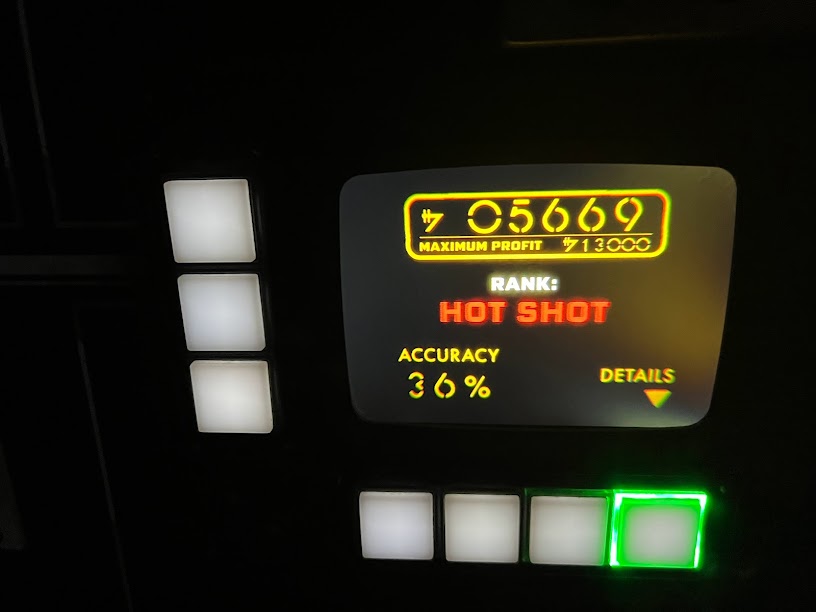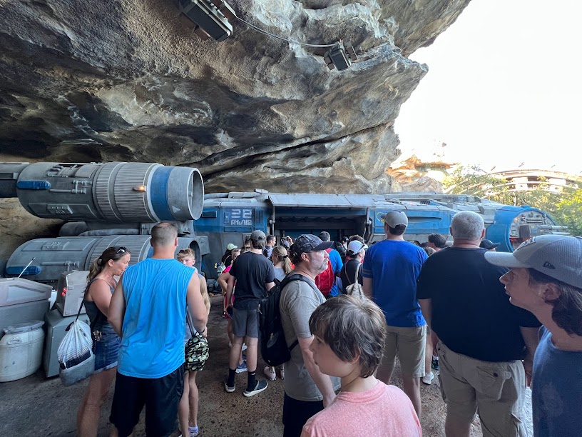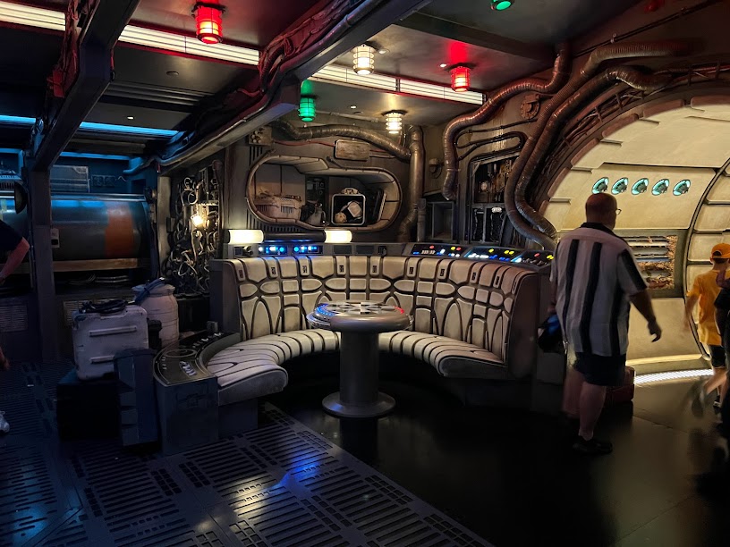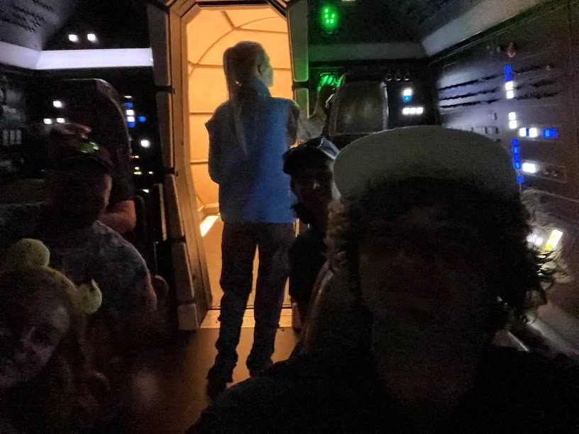 Earlier in the day, I snagged a LIghtning Lane for a nighttime ride on Slinky Dog Dash but by this point, our 2 hour window was up and at the start of dinner, I saw a LIghtning Lane available for MIllennium Falcon: Smuggler’s Run whose window would coincide with when we were most likely going to finish eating. And it was time to hop a ride on the fastest hunk of junk on the galaxy.