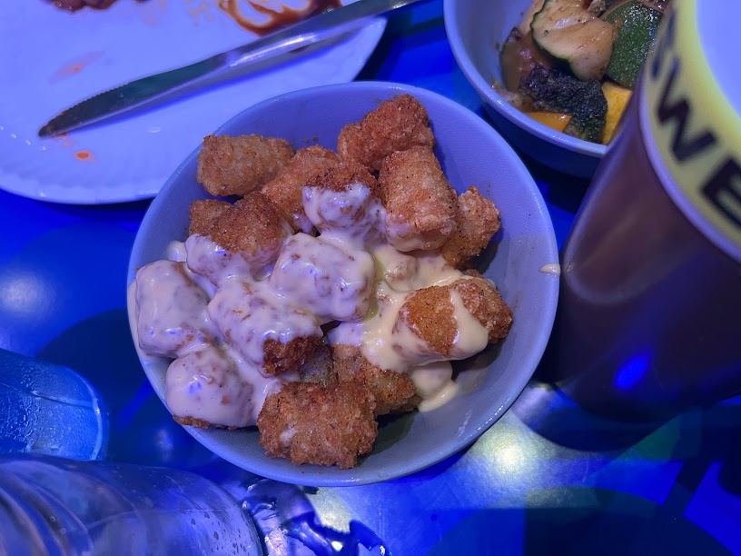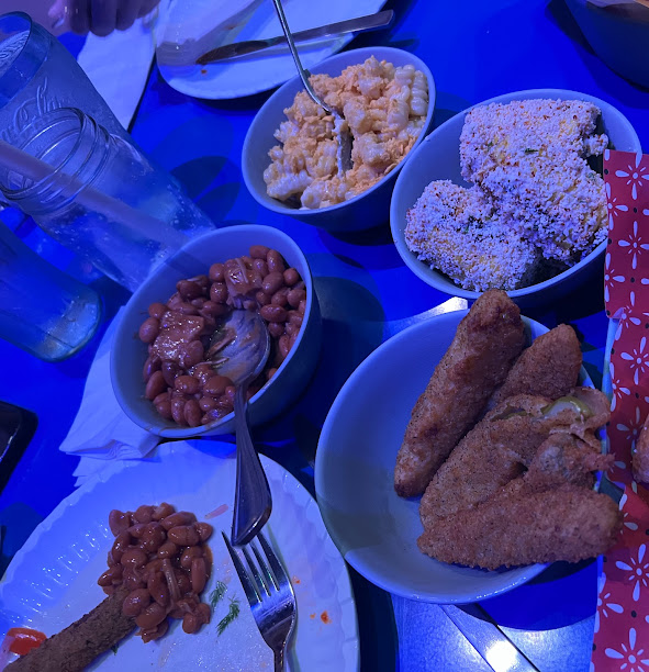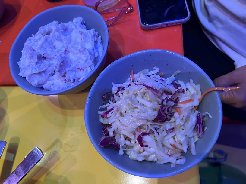 We had the Buckin’ Baked Beans, Slinky Doooooooooog’s Mac & Cheese, Cowpoke Corn on the Cob (Mexican Street Corn), Force Field Fried Pickles…