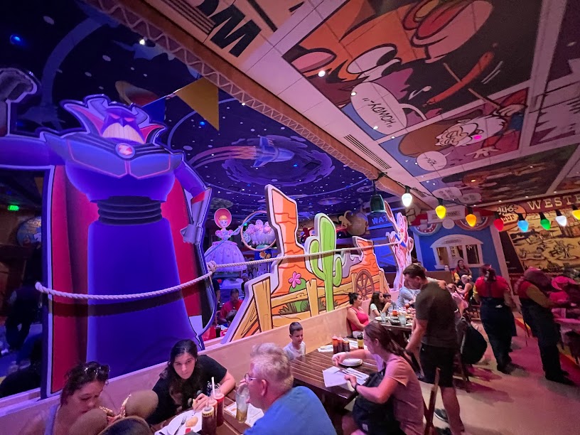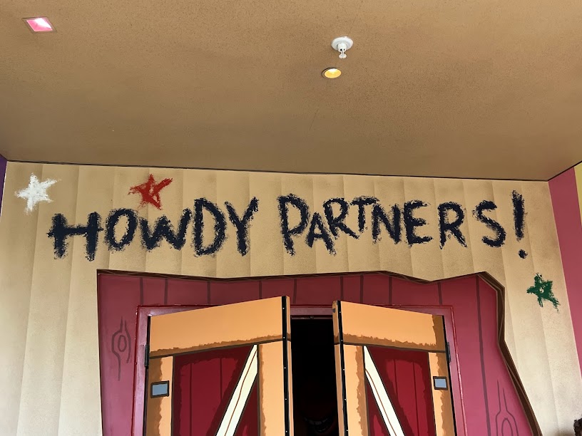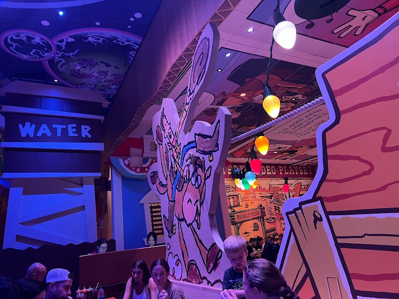 The idea behind this place is that we are all toys and we’re at a rodeo Andy set up. It’s all kinds of loud and colorful and I mean, don’t come in here if you have a hangover obvs.