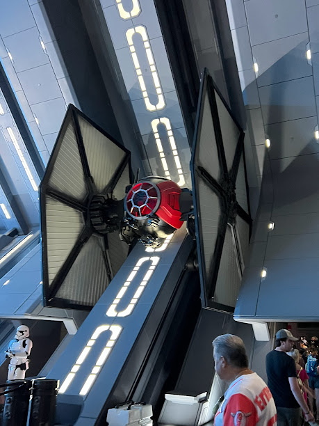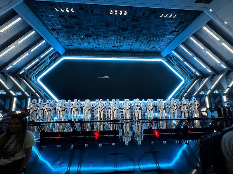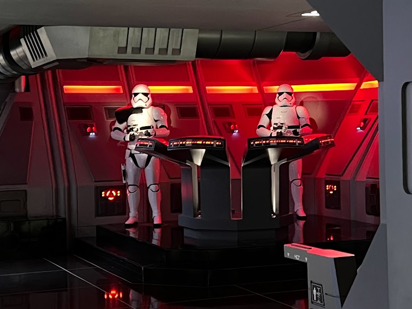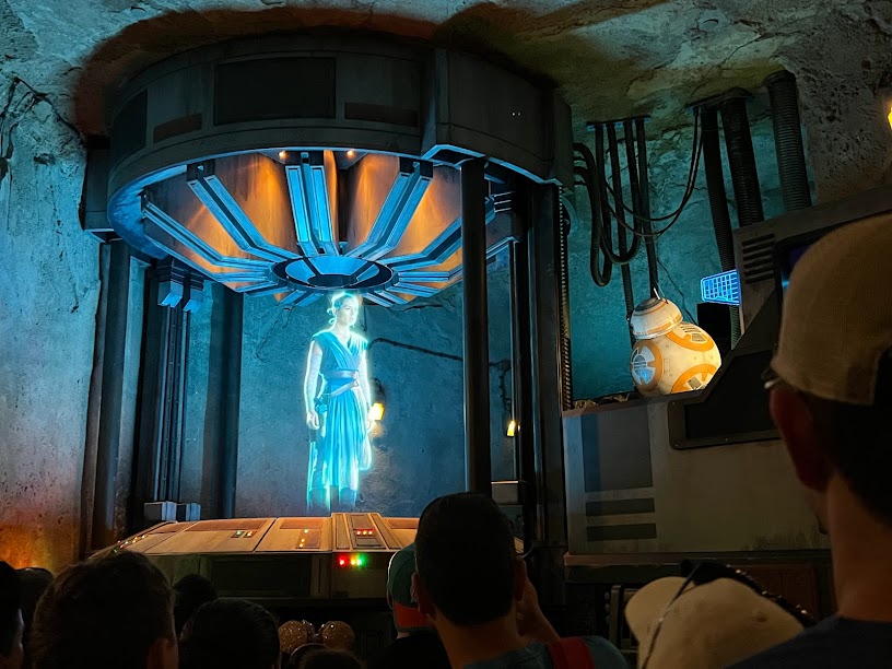 The line for Star Wars: Rise of the Resistance was pretty much non-existent so we hopped in line and within minutes, we were being briefed by Rey.
