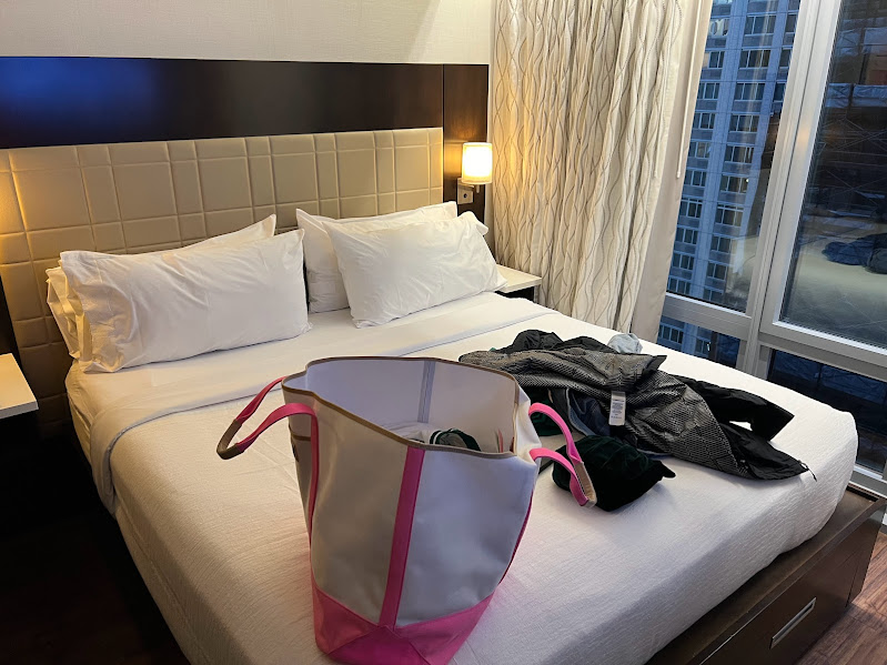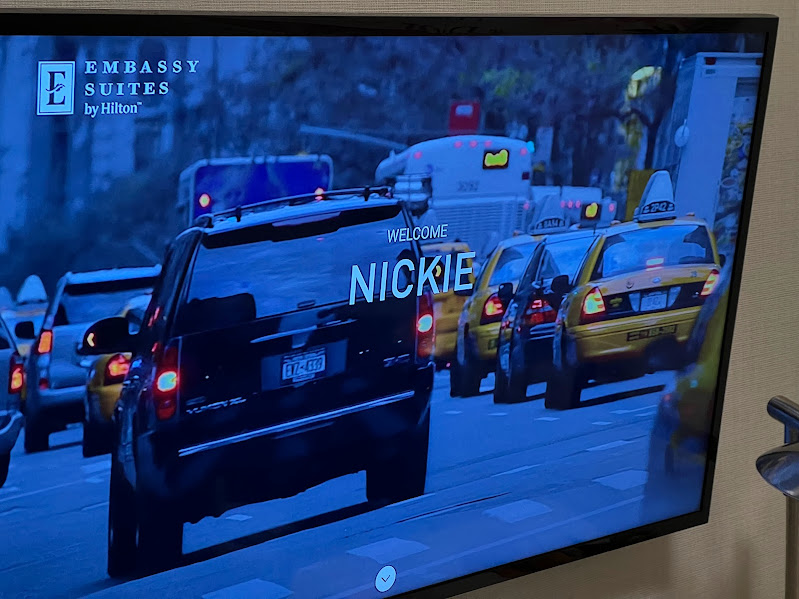 When the Uber arrived, the Uber folks went on in and checked in for their respective parties. Nickie checked in for us and we were up in our room by 4:30.