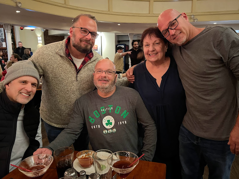 And yeah, there were A LOT of us. There were the five of us (me, Nickie, Owen, Myles, and Hannah) plus obviously my mom. There was also my oldest brother, Chris, and his wife, Paulette, and her son, Jeremie. And Chris’s daughters, my nieces – Stephanie along with her husband, Mikey, and their daughters Sophia and Scarlett and Holly, along with her husband, Brad, and their son, Teddy. The second-oldest brother, Scott, was also there with his wife Carrie and their daughters Gwen and Matilda in from Michigan. And there was the second-youngest brother (next to me), Jeff, with his wife Sheila and their daughter, my niece, Shannon.