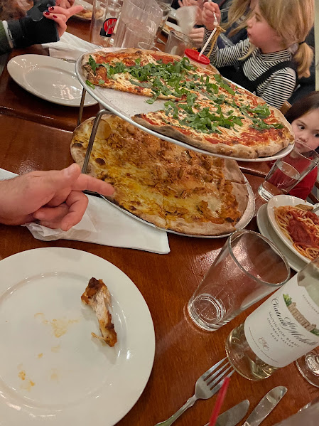 The restaurant put us at a long table in the middle of the first floor and as we sat down, I could tell right away this was the right call for tonight. On a travel day, a casual pizza dinner made a lot of sense. Plus, the restaurant wasn’t overwhelmingly loud but it was loud enough to put all the parents with little ones at ease since they didn’t have to worry about disturbing anyone.