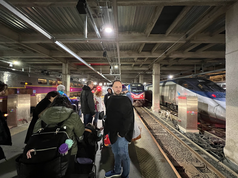 See how crazy South Station is? Mikey even forgot how to wear a coat. Place messes with you.