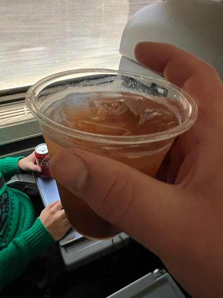 In addition to switching chairs to pass the time, Nickie also got me a nice DogFish from the cafe a little ways into the trip.