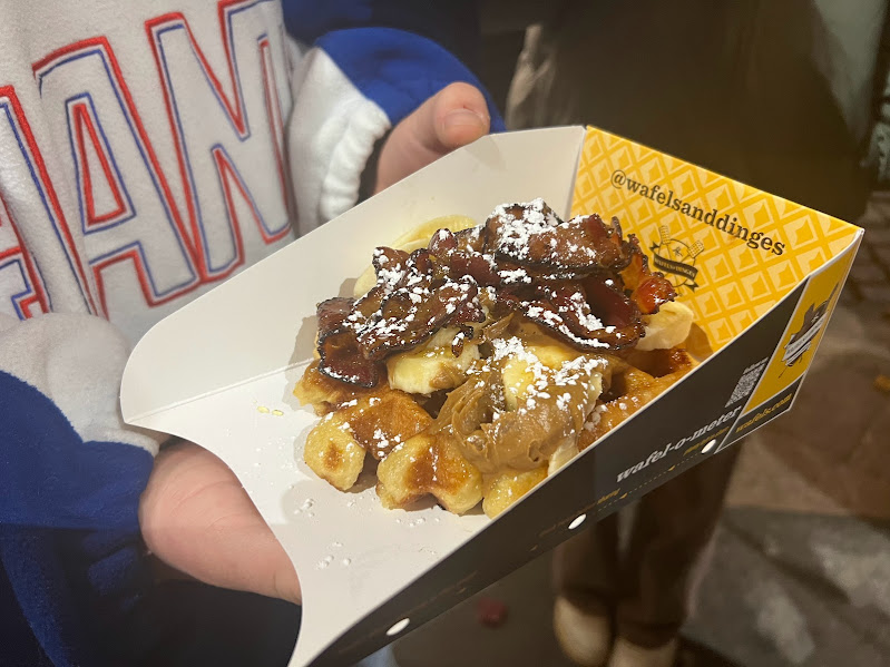 This here is Myles’s Elvis Wafel (bacon wafel with peanut butter, bananas, and honey).