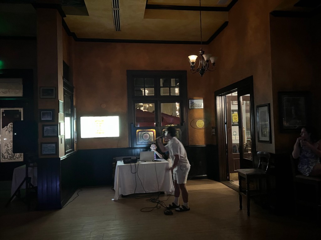 Karaoke started at around 9PM I think. And pretty much right when the sign-up sheet was put out, both Myles and I put our names in. And yeah, Myles kind of brought the house down. He sang both “If I Can Dream” by Elvis and “My Way” by Frank Sinatra.