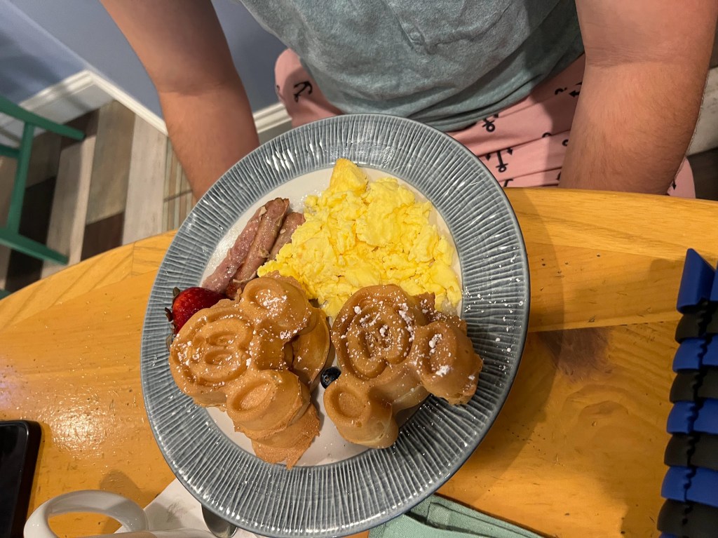 A few people ended up going with the Mickey Waffles (Served with Scrambled Eggs and Choice of Bacon or Sausage).