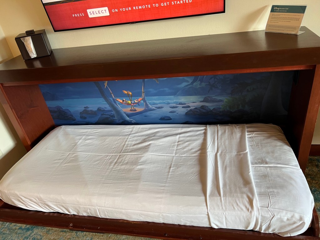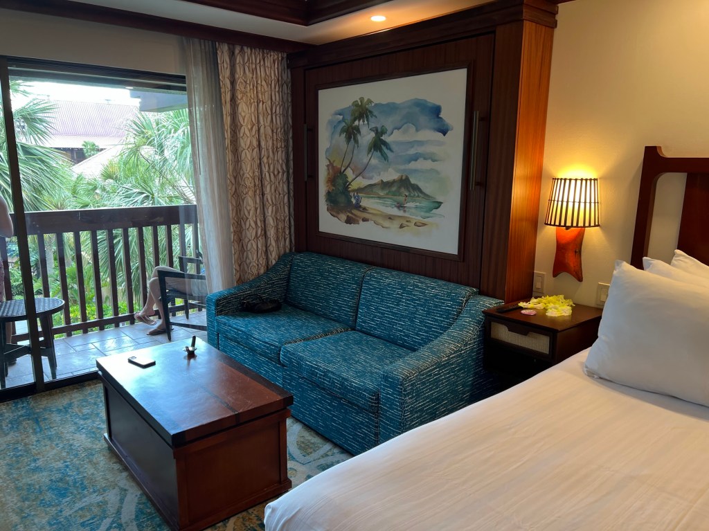 But yeah, I mean for a Studio, the Polynesian does it pretty right. The one main complaint I have about these rooms is the lack of storage. Obviously, there are no drawers under the TV since there was an Owen there and there is really no, like, chest of drawers anywhere. You have two drawers under the main bed and obvs a closet. And then some shelves kind of here and there.