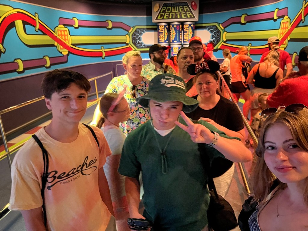 Since there were 7 of us (Me, Myles, Owen, Hannah, Tony, Larissa, and Mia – Nickie ain’t having any of that Space Mountain bullshizz), I was relegated to a spaceship by my lonesome. But here, look, here is everyone else that has friends.