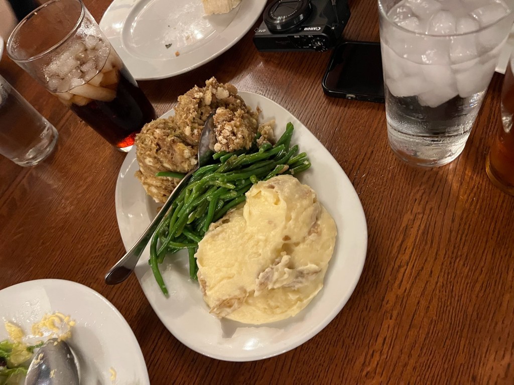 And this all was served with sides of Mashed Potatoes, Herbed Stuffing, and Seasonal Vegetables (we had Green Beans).