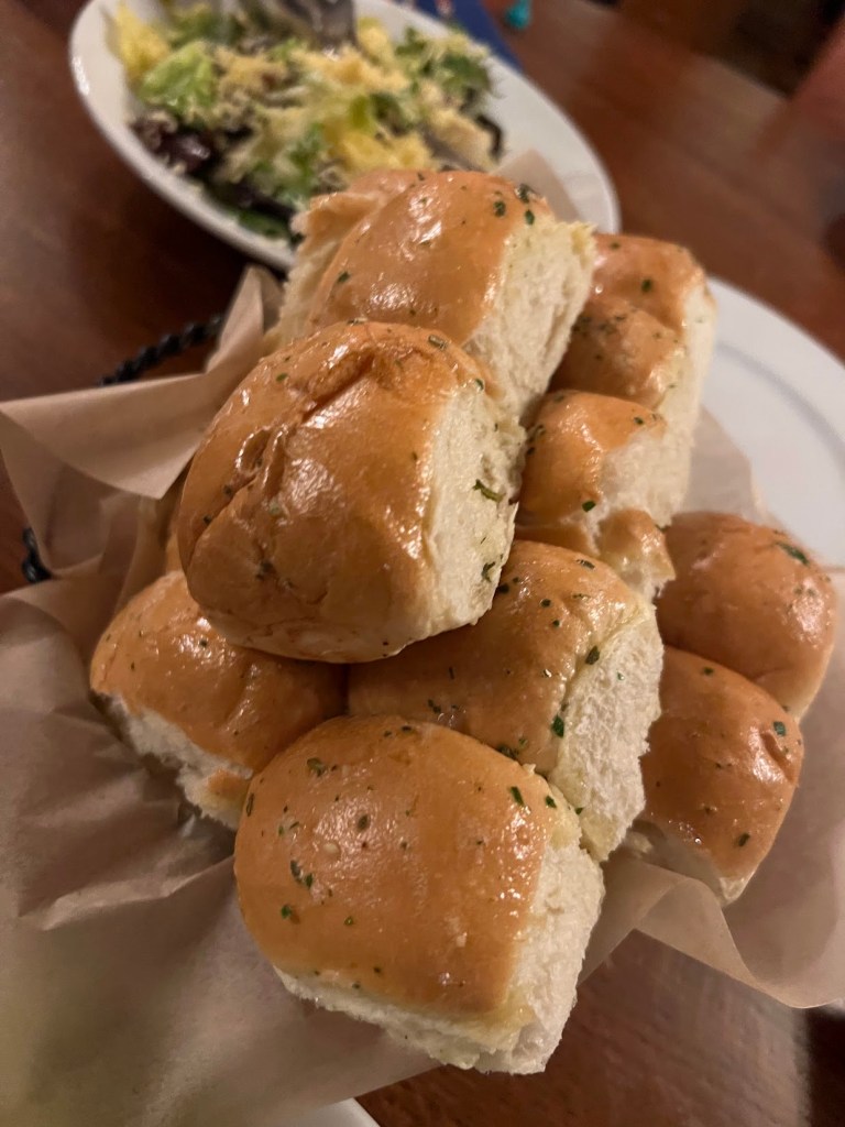 And the rolls were served with the Declaration Salad (Mixed Greens, Apples, Cranberries, and Cheese tossed with our House-made Dressing).