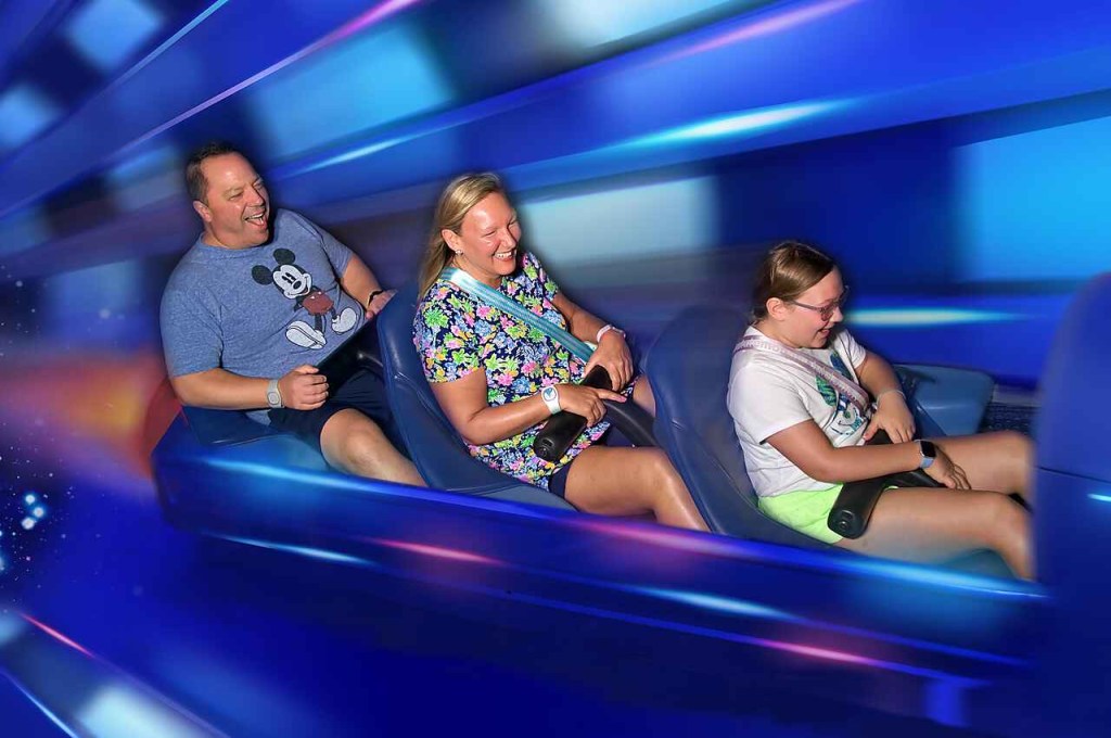 Myles, Hannah, and Owen trekked over to Tomorrowland for another ride on Space Mountain.