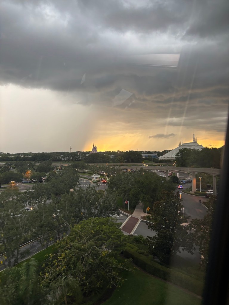 While we were in Mickey’s Philharmagic, we could literally hear the storm raging. Nickie also captured it as they were walking back to the room.