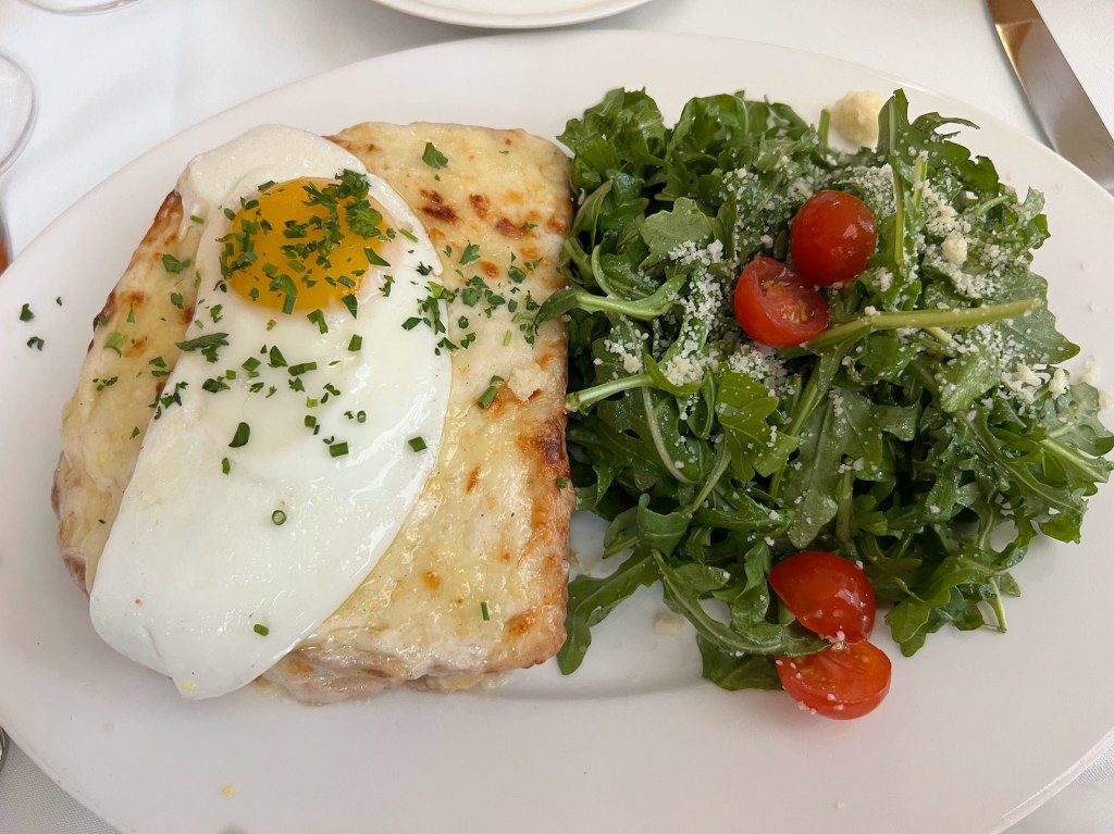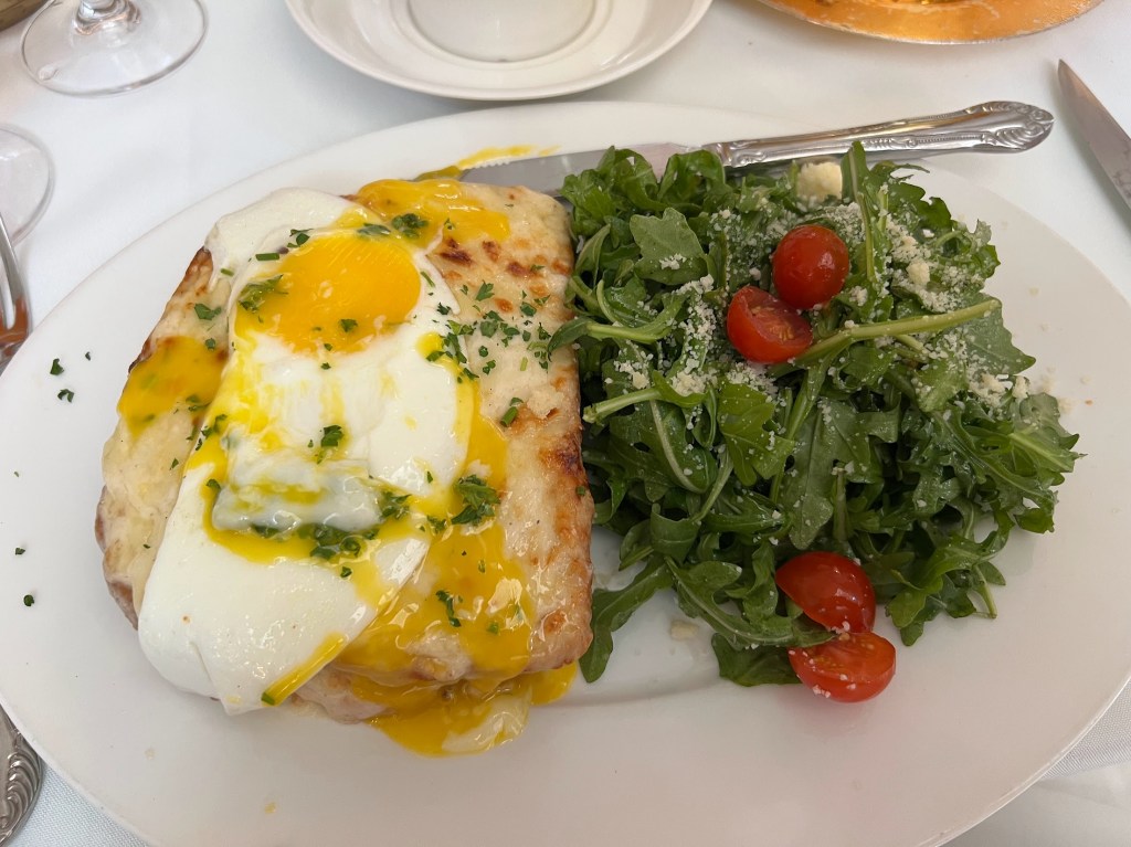 For my main (and I think Tony got this as well?), I went with the Croque Madame (Country bread, French ham, Gruyere cheese, Maille Dijon mustard, and bechamel sauce).