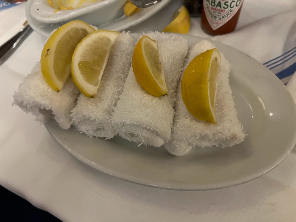 After we finished up with our entrees, our waitress brought out some hot towels and lemons.