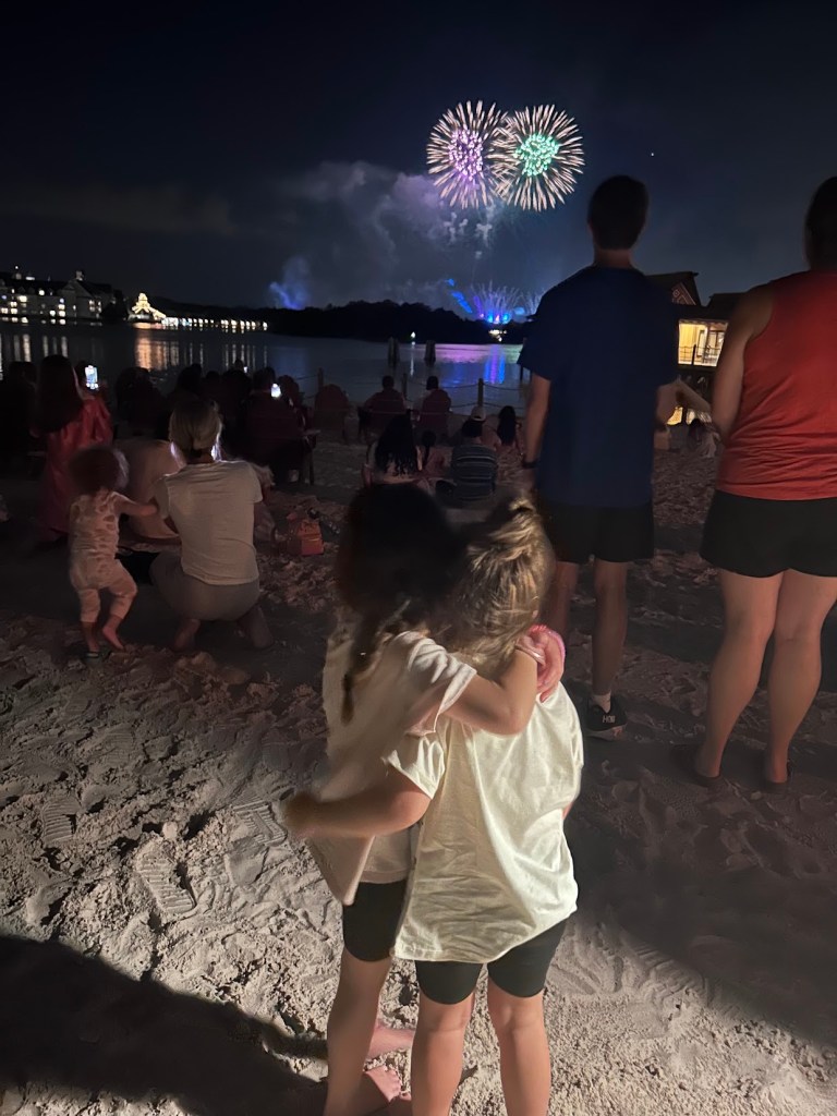 Aw we also at this point got a picture from the Pittmans. They were down on the beach at the Polynesian catching the “Happily Ever After” fireworks.