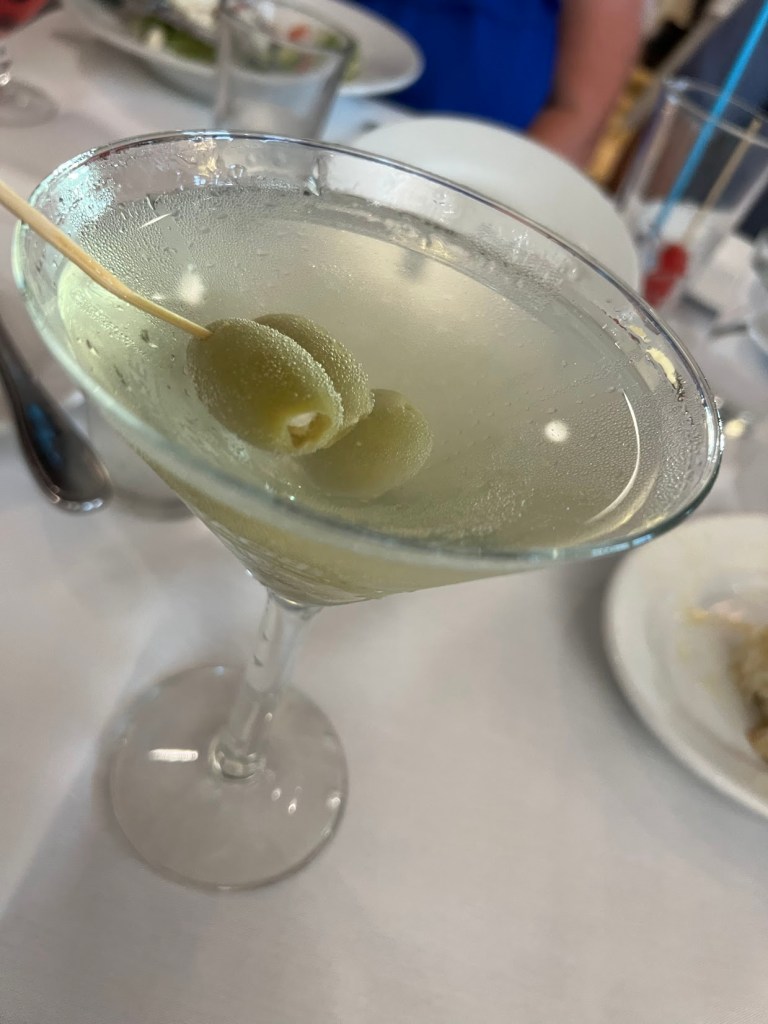 I also, of course, ordered a Grey Goose martini, dirty WITH blue cheese stuffed olives.