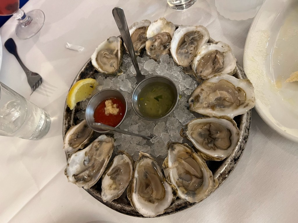 And these weren’t just any old oyster. These right here are Lucky Dux oysters. The cool thing about these guys is they are grown and harvested in Duxbury, MA but they’re exclusive to the Boathouse. Obviously, we have to get these every time we come here. Not only are we from MA, but literally Larissa grew up in Duxbury.