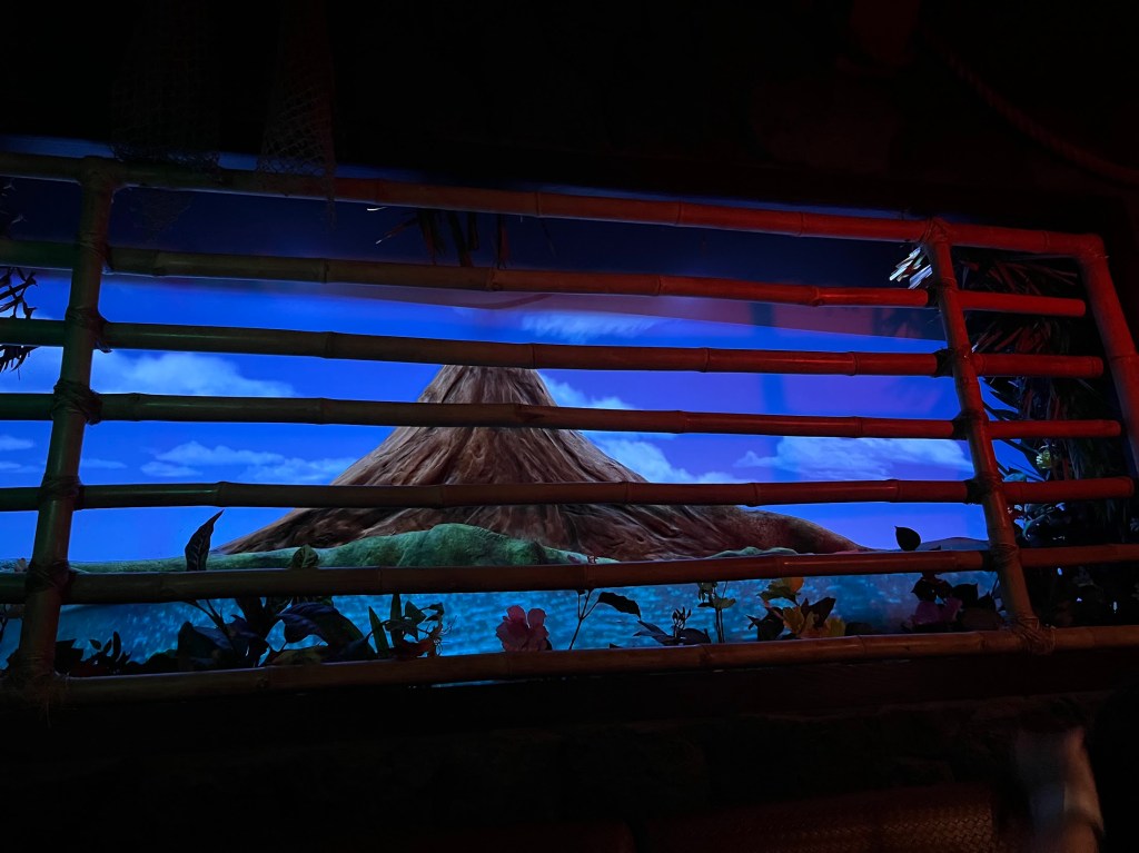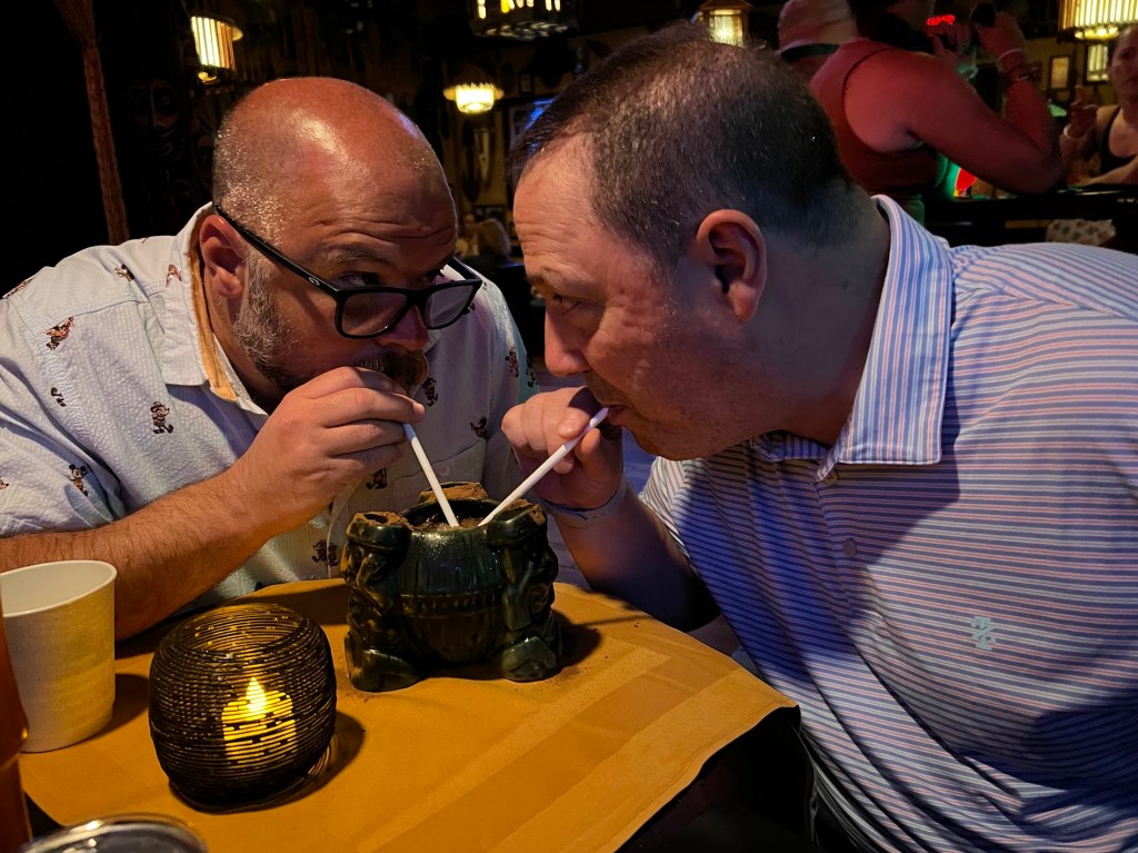 When they bring you the drink, everyone in the restaurant chants (both cast members and guests) and there is like a big rainstorm and the Uh-Oa animatronic (originally from the Tiki Room when it was “under new management”) comes to life and tries to place a curse on the bar. The drink comes out on fire and as the drinkers, we need to give a sacrifice (I think?) by throwing cinnamon into the drink until the fire goes out.