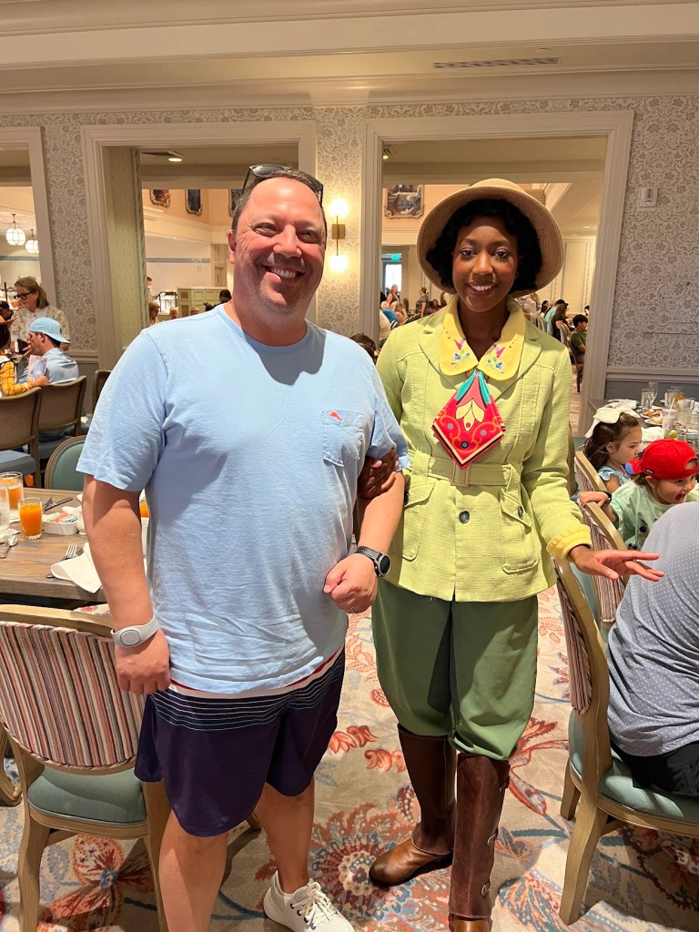 Well so yeah. We had Tony take a picture with Tiana. And before I snapped the picture, I shouted out, “Say getting extremely wet.”