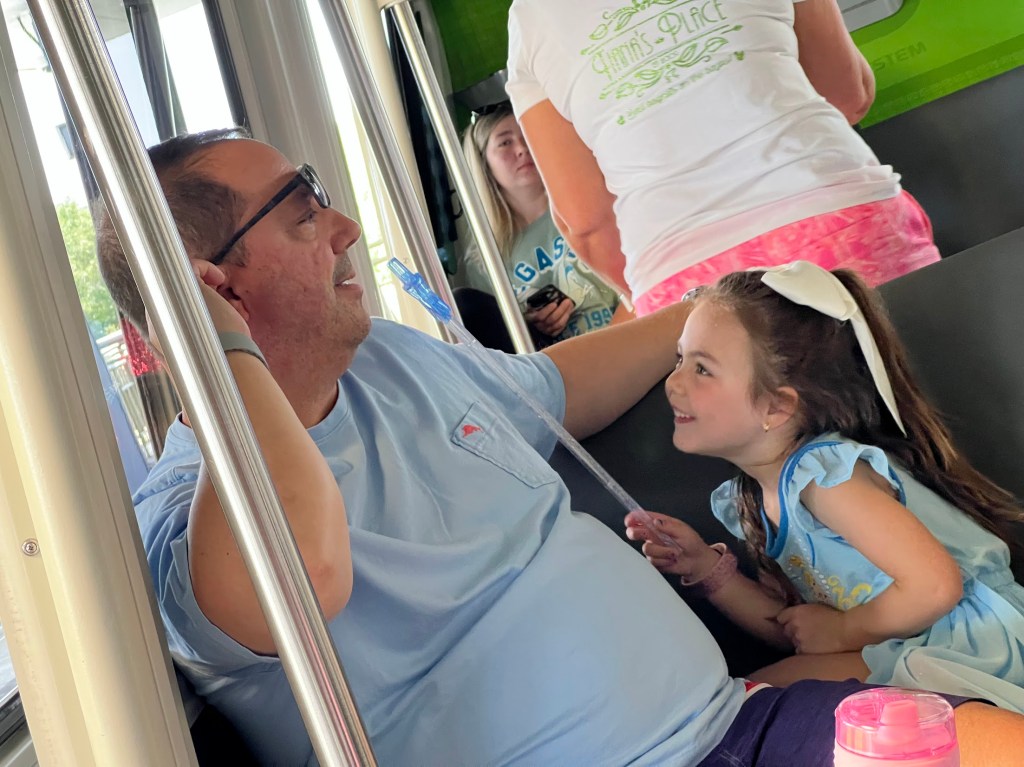 We hopped back on the monorail to head back to the Polynesian and on the way there, Sophia used her new magic wand she got at Cinderella’s Royal Table the night before to make Tony’s sunglasses move up and down.