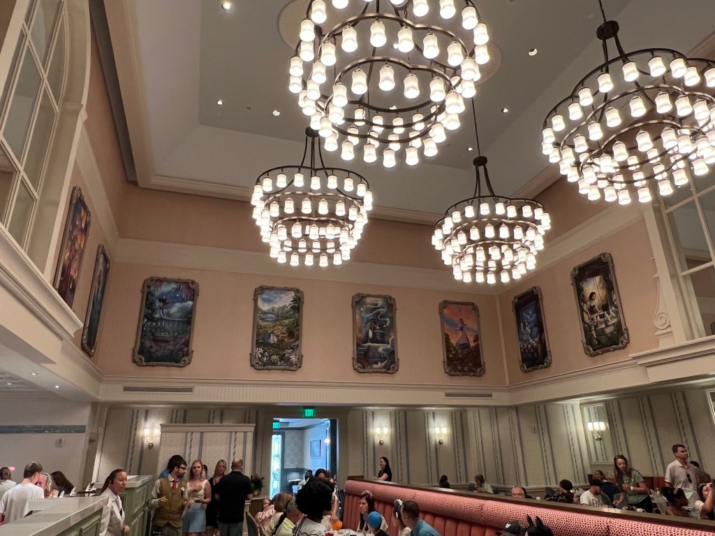Whatevz. Let’s get on with breakfast. The interior of the restaurant def got a glow-up. I mean, look at all these paintings showing all these different Disney wishers.