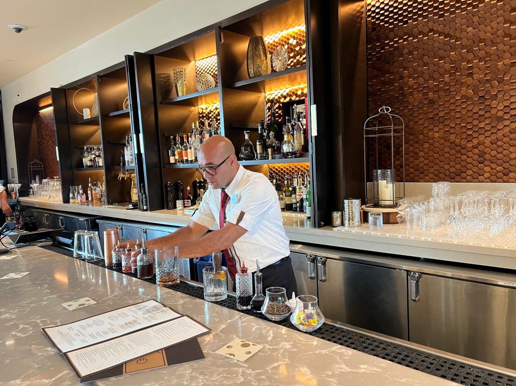 I ordered up a Modern Fashioned (Knob Creek Rye Whiskey, Appleton Estate Reserve Blend Rum, Vanilla Bean, Bitters).