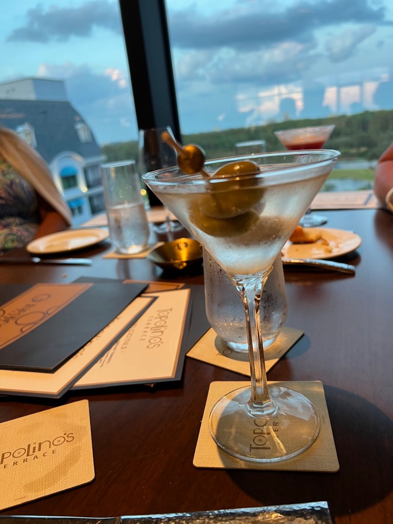 Dinner tonight was up on the top floor at Topolino’s Terrace. Which, I don’t know, does it make a run at one of the best restaurants at Walt Disney World?