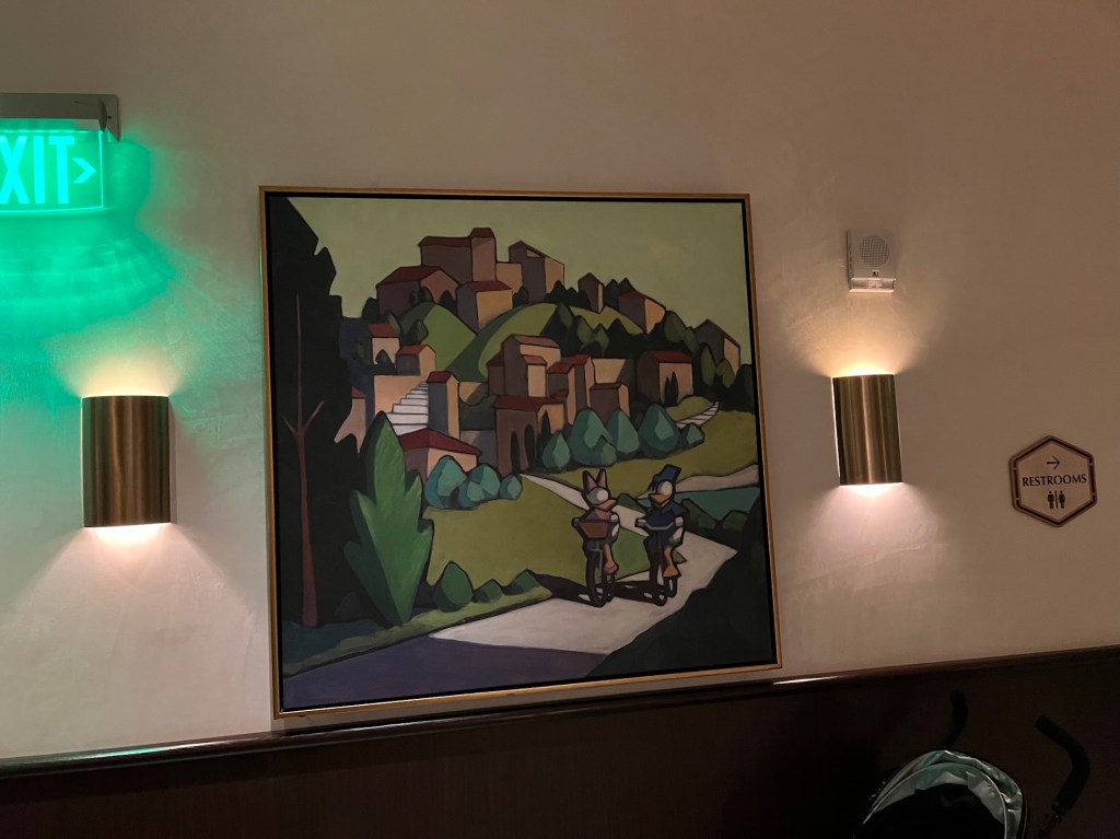 And that reminds me. I never really talked about the whole atmosphere / ambiance situation going on at Topolino’s. It’s both elegant and inviting in that it mixes a minimalistic design with little touches of Disney like those paintings on the way to the restroom there. Plus, I mean, that patio.