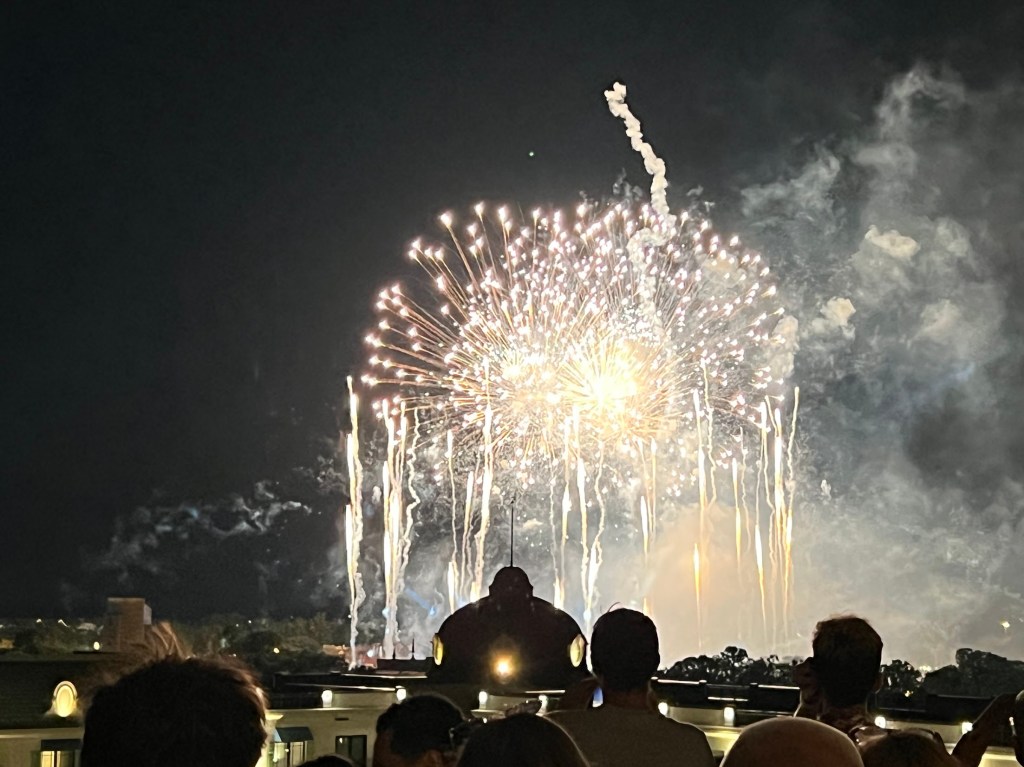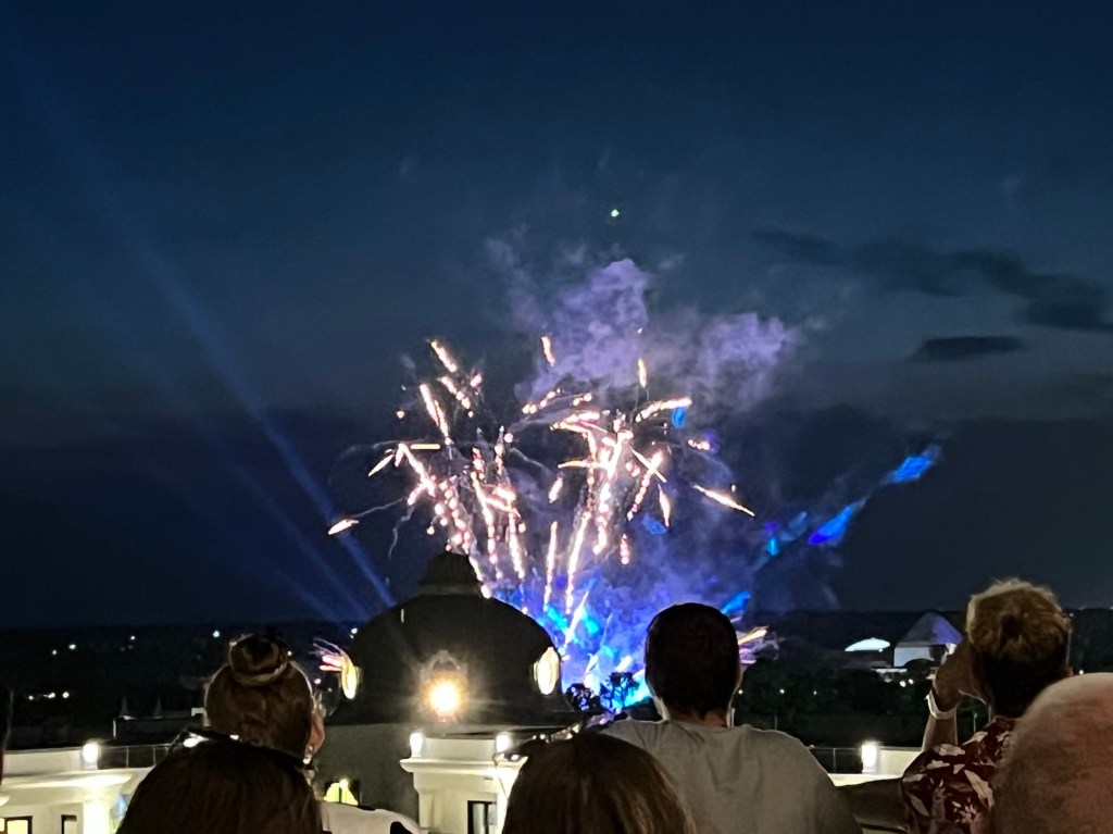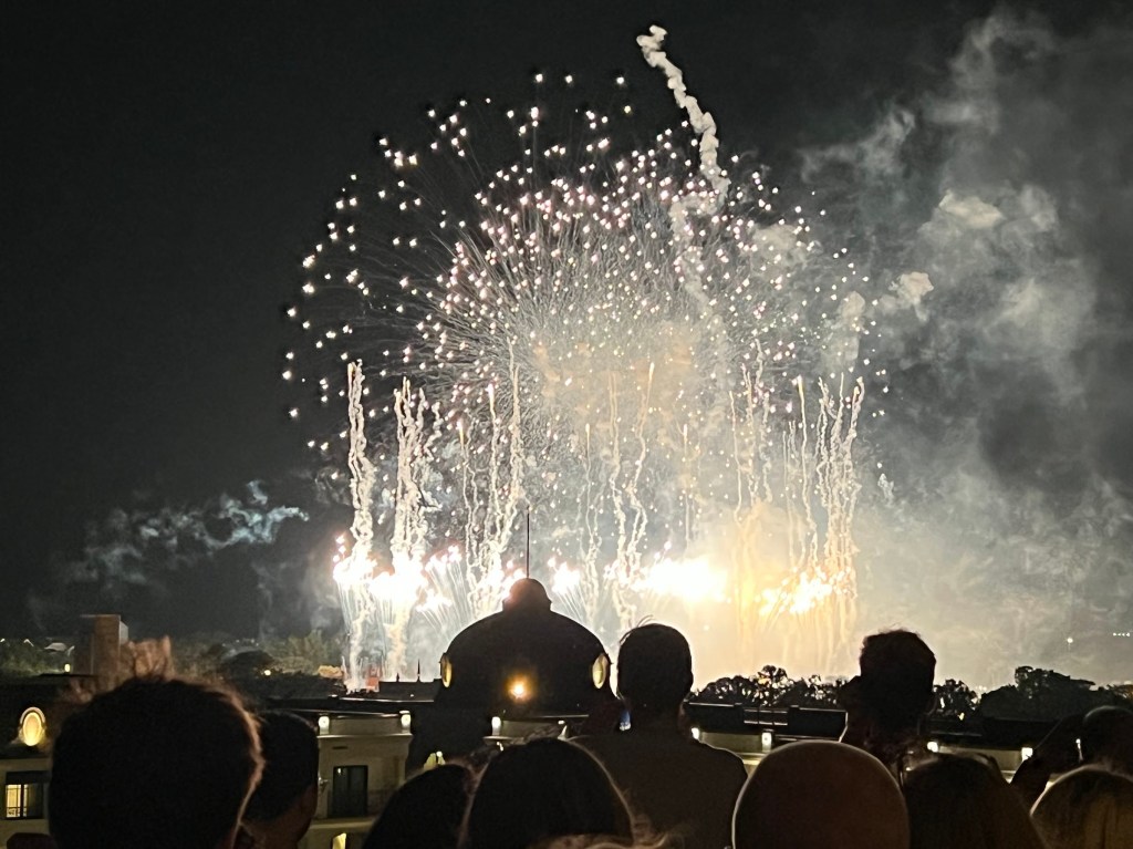 Speaking of which. At this point, it was around 9:00 which meant we were nearing the start time of the Luminous: the Symphony of Us nighttime spectacular at EPCOT. Which btw you could see from that outdoor patio. Our waiter informed us he would hold off on getting our entrees out while we went out to enjoy them.